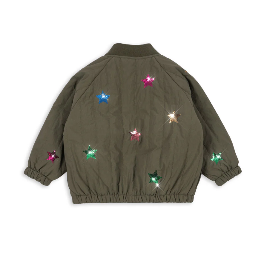 Our forever favorite and a true classic in the Konges Sløjd outerwear collection. Juno is a lightweight thermo jacket with polyester padding for effective insulation, and a breathable, fluorine-free impregnation that makes it both wind-resistant and water-repellent. Designed with a decorative sequin pattern in the back.